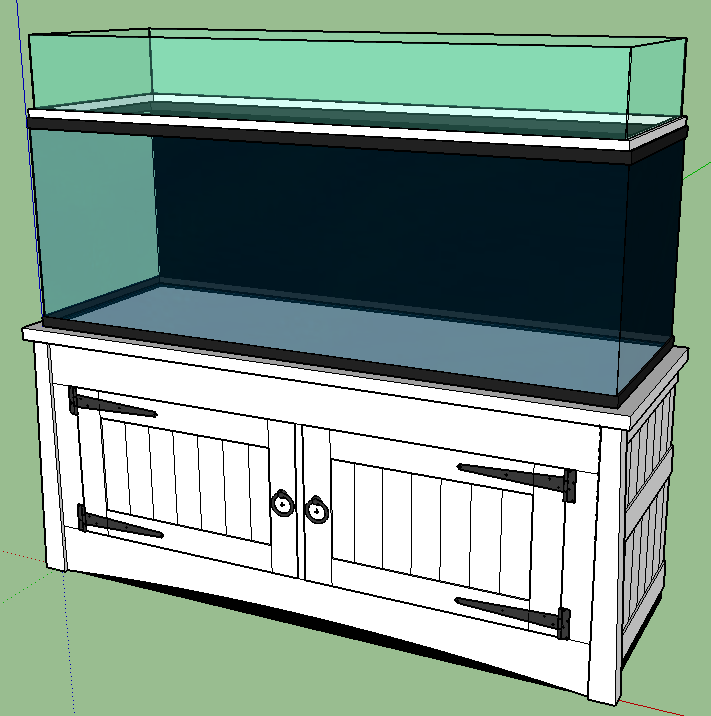 Alright! Three holes, no cracks, things looking good! Previous owner had painted the back glass black, I removed that. You'll notice the leaves on the driveway, this is October of 2015. This project took a very long time, and I am very happy that it took its sweet time to snow that year! Since I wasn't liking the stand that I'd received along with this tank, I had to build my own. I was comfortable building a strong stand. The 240 gallon reef tank I built in 2011 is doing fine, the stand is rock solid, the engineermanship is sound. But that stand is hidden, built into a wall, and not finished in any sort of furniture-grade style. This one would need to be. Furthermore, we wanted the maximum amount of swimming area for Quickly, so his basking area would be above the main tank.