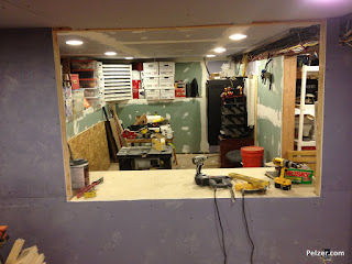 Here's the hole in the wall, drywalled (but not yet spackled or painted) and ready to receive the tank: