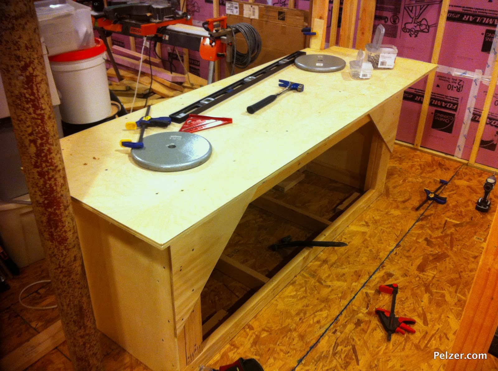 So I immediately tore out the studs I'd begun adding for the wall between the playroom and the storage room, and began to design and construct a built-in stand: